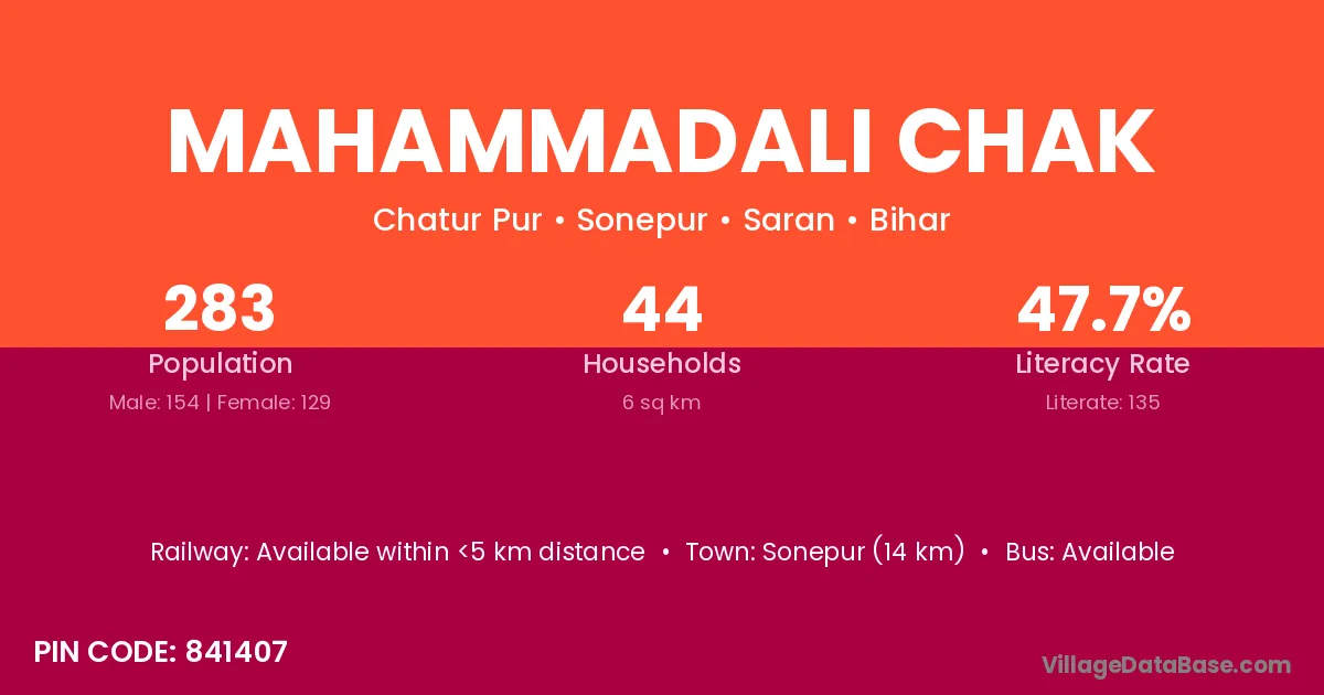 Mahammadali Chak village has a total population of 283 people, of which 154 are males and 129 are females.