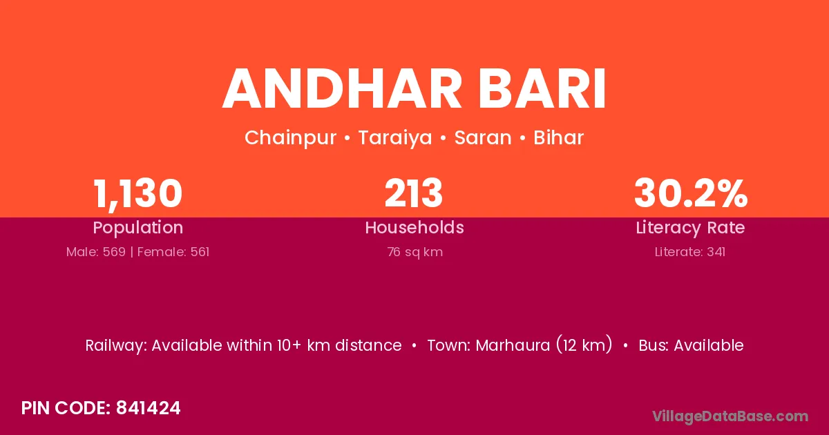 Marhaura (12 km) is the nearest town to Andhar Bari village for major economic activities and is located approximately 12 km away.