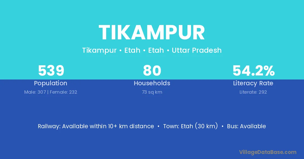 The literacy rate of Tikampur village is 44.83%. Male literacy stands at 50.77% and female literacy at 38.67%.