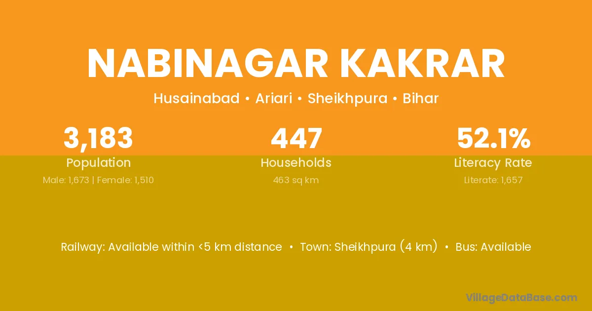 Sheikhpura (4 km) is the nearest town to Nabinagar Kakrar village for major economic activities and is located approximately 4 km away.