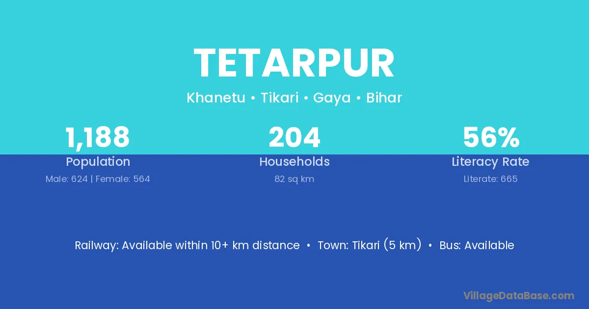 Barbigha (5 km) is the nearest town to Tetarpur village for major economic activities and is located approximately 5 km away.