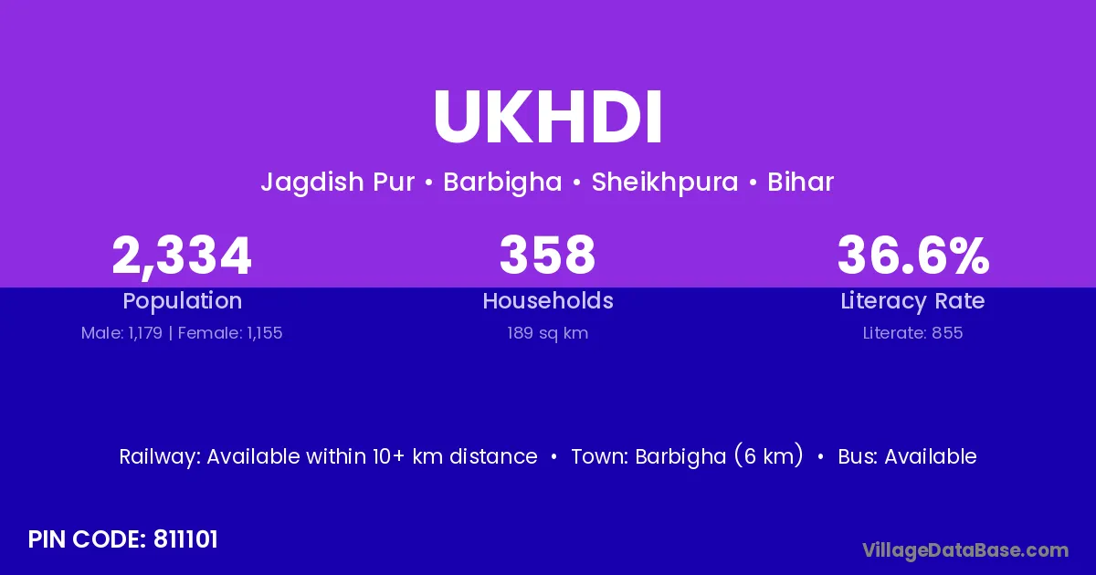 Barbigha (6 km) is the nearest town to Ukhdi village for major economic activities and is located approximately 6 km away.