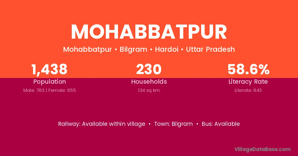 Mohabbatpur village has a total population of 3,768 people, of which 1,985 are males and 1,783 are females.