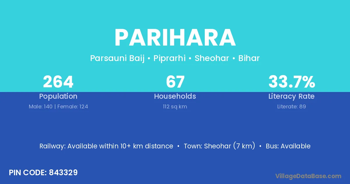 Sheohar (7 km) is the nearest town to Parihara village for major economic activities and is located approximately 7 km away.