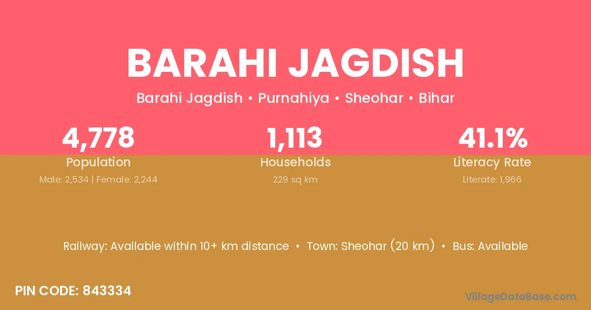 According to Census 2011 information, the village code of Barahi Jagdish village is 843334.