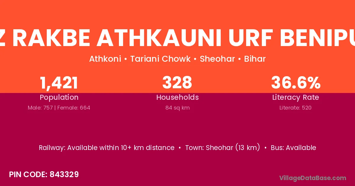 Az Rakbe Athkauni Urf Benipur village has a total population of 1,421 people, of which 757 are males and 664 are females.