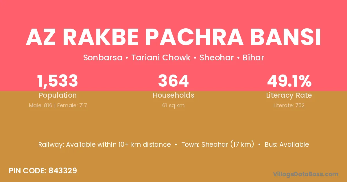 Az Rakbe Pachra Bansi village has a total population of 1,533 people, of which 816 are males and 717 are females.