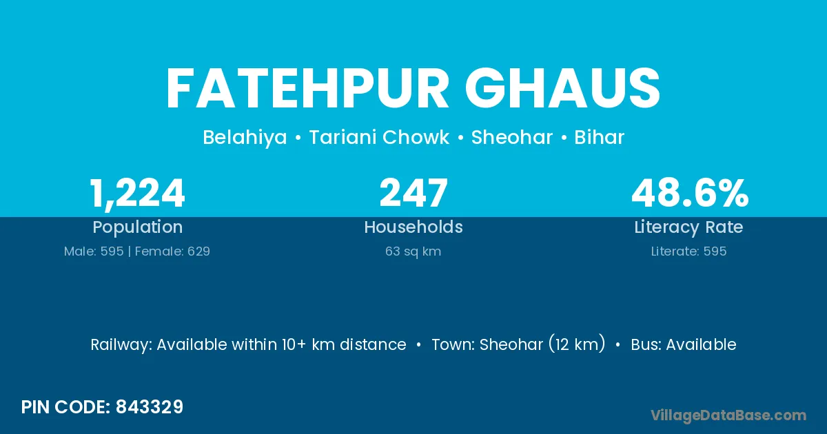 Sheohar (12 km) is the nearest town to Fatehpur Ghaus village for major economic activities and is located approximately 12 km away.