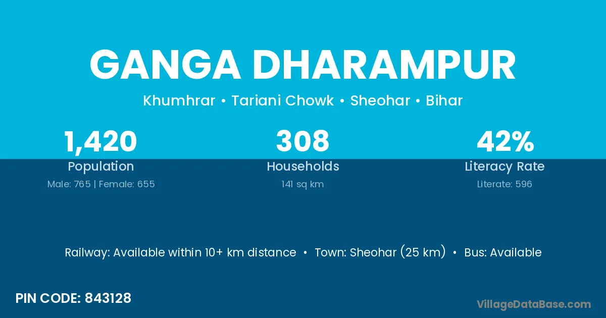 Sheohar (25 km) is the nearest town to Ganga Dharampur village for major economic activities and is located approximately 25 km away.