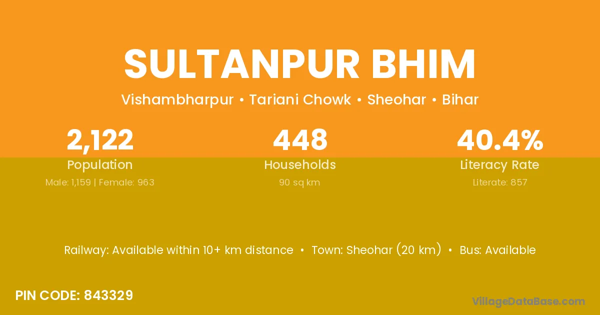 Sheohar (20 km) is the nearest town to Sultanpur Bhim village for major economic activities and is located approximately 20 km away.