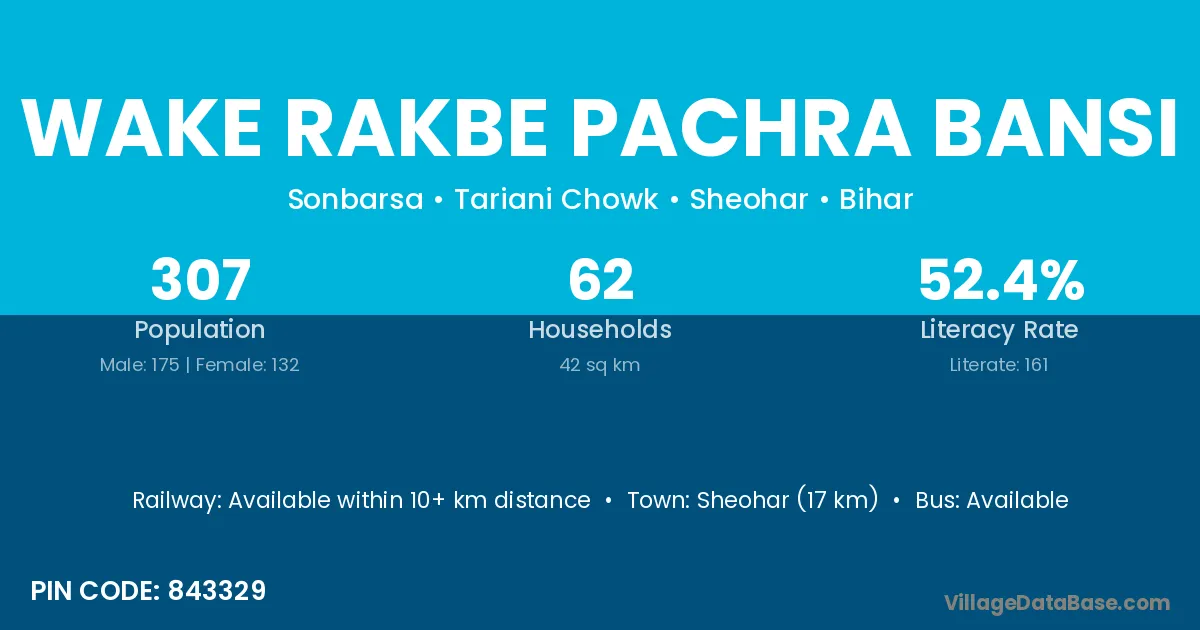 Wake Rakbe Pachra Bansi village has a total population of 307 people, of which 175 are males and 132 are females.