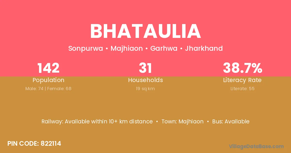 The literacy rate of Bhataulia village is 39.96%. Male literacy stands at 47.51% and female literacy at 31.65%.