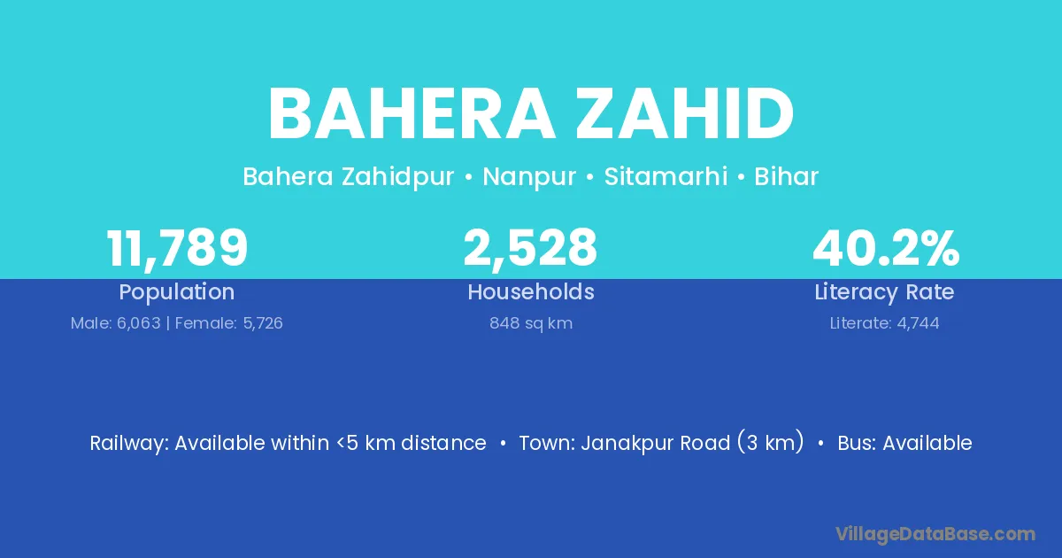 Janakpur Road (3 km) is the nearest town to Bahera Zahid village for major economic activities and is located approximately 3 km away.