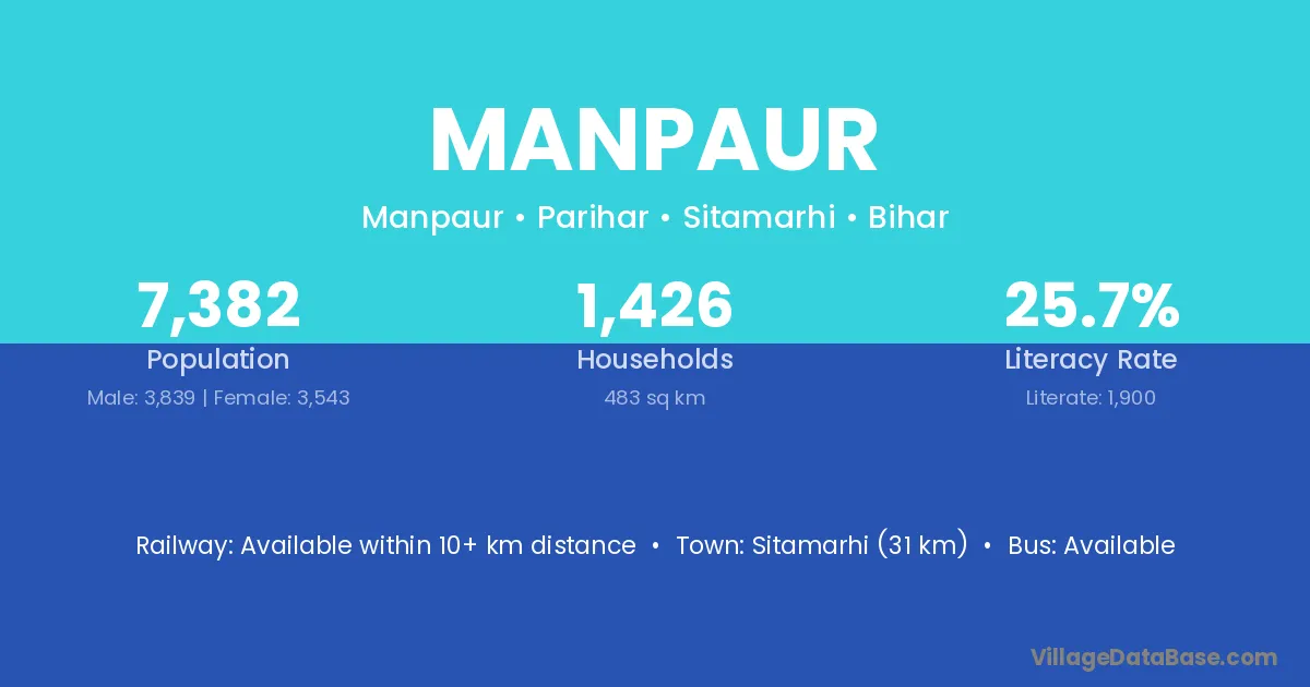 Sitamarhi (31 km) is the nearest town to Manpaur village for major economic activities and is located approximately 31 km away.