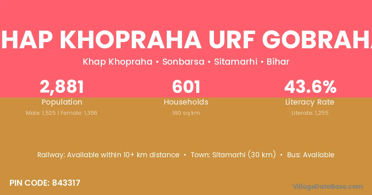 Khap Khopraha Urf Gobraha village is located in the Sonbarsa Subdivision of the Sitamarhi district in Bihar .