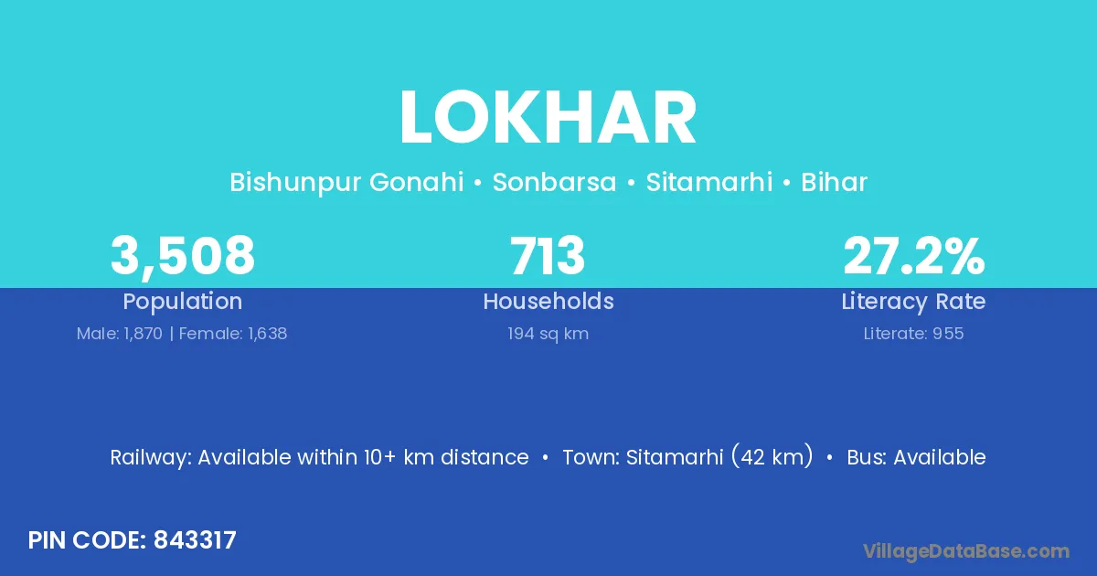 Sitamarhi (42 km) is the nearest town to Lokhar village for major economic activities and is located approximately 42 km away.