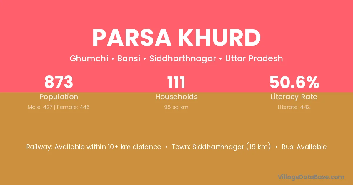 Parsa Khurd village has a total population of 3,148 people, of which 1,570 are males and 1,578 are females.