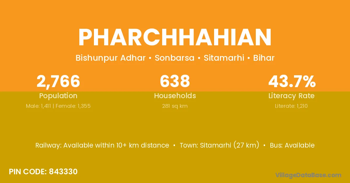 Sitamarhi (27 km) is the nearest town to Pharchhahian village for major economic activities and is located approximately 27 km away.