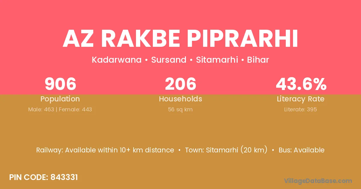Az Rakbe Piprarhi village has a total population of 906 people, of which 463 are males and 443 are females.