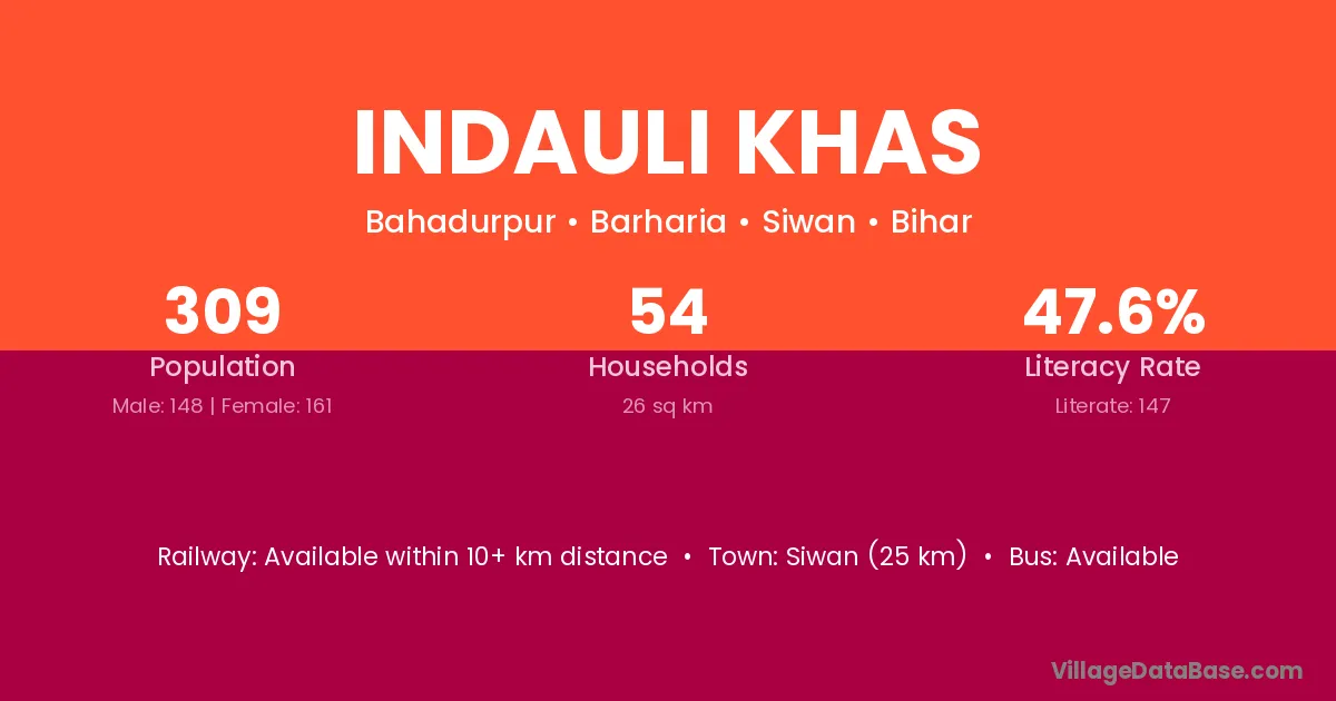 Siwan (25 km) is the nearest town to Indauli Khas village for major economic activities and is located approximately 25 km away.