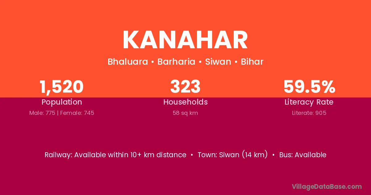Siwan (14 km) is the nearest town to Kanahar village for major economic activities and is located approximately 14 km away.