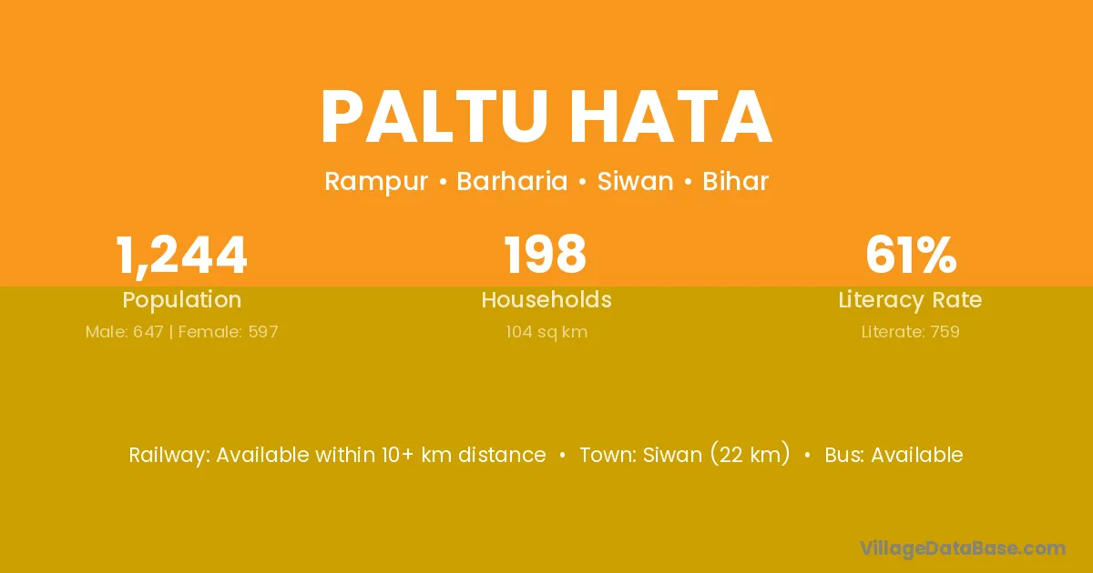 Siwan (22 km) is the nearest town to Paltu Hata village for major economic activities and is located approximately 22 km away.