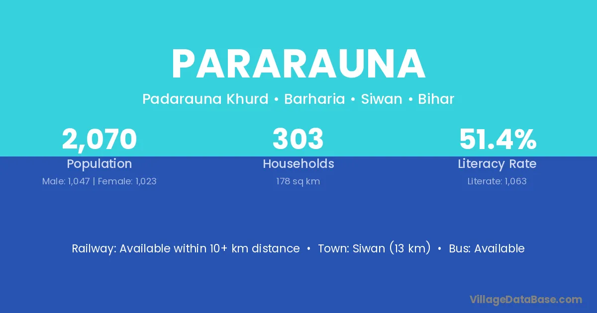 Siwan (13 km) is the nearest town to Pararauna village for major economic activities and is located approximately 13 km away.