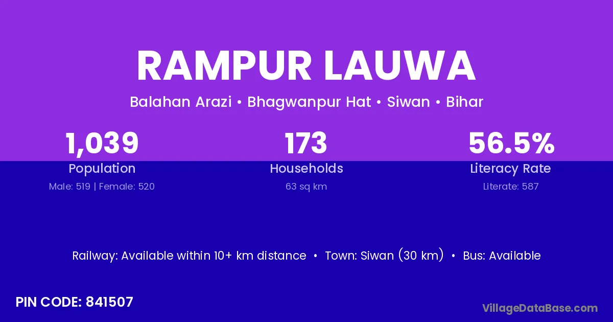 Siwan (30 km) is the nearest town to Rampur Lauwa village for major economic activities and is located approximately 30 km away.