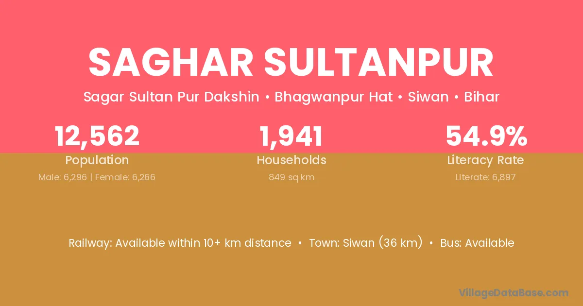 Siwan (36 km) is the nearest town to Saghar Sultanpur village for major economic activities and is located approximately 36 km away.
