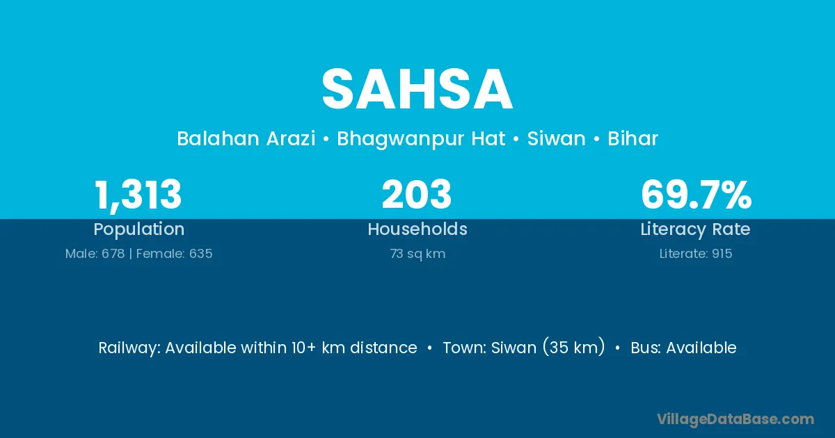 Siwan (35 km) is the nearest town to Sahsa village for major economic activities and is located approximately 35 km away.