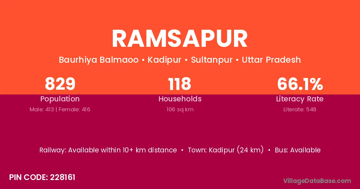 The literacy rate of Ramsapur village is 56.34%. Male literacy stands at 66.92% and female literacy at 44.23%.