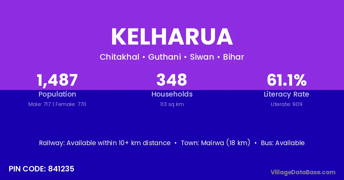 Mairwa (18 km) is the nearest town to Kelharua village for major economic activities and is located approximately 18 km away.