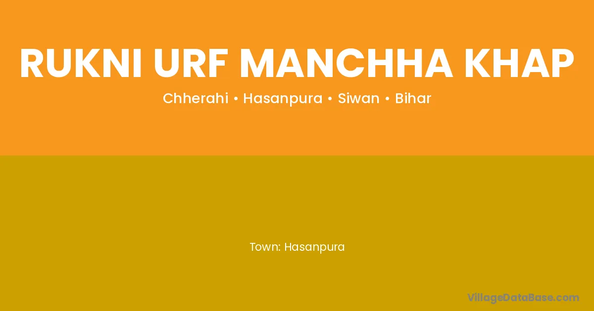 Rukni Urf Manchha Khap village is located in the Hasanpura Subdivision of the Siwan district in Bihar .