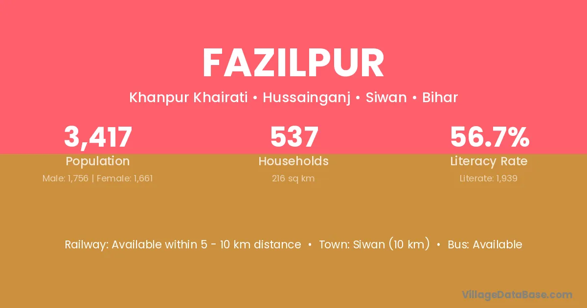 Siwan (10 km) is the nearest town to Fazilpur village for major economic activities and is located approximately 10 km away.