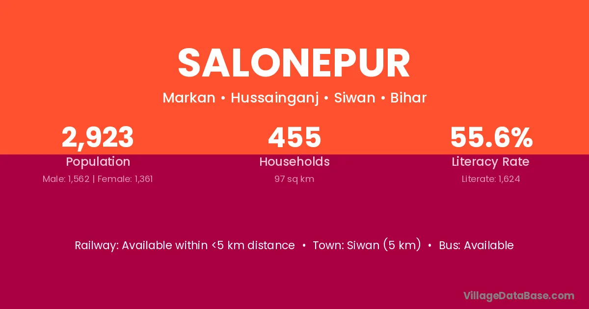 Siwan (5 km) is the nearest town to Salonepur village for major economic activities and is located approximately 5 km away.