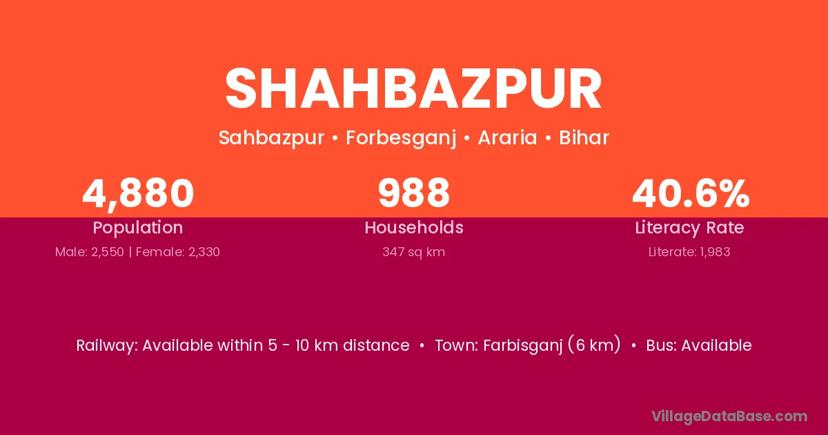 Shahbazpur village has a total population of 2,465 people, of which 1,287 are males and 1,178 are females.