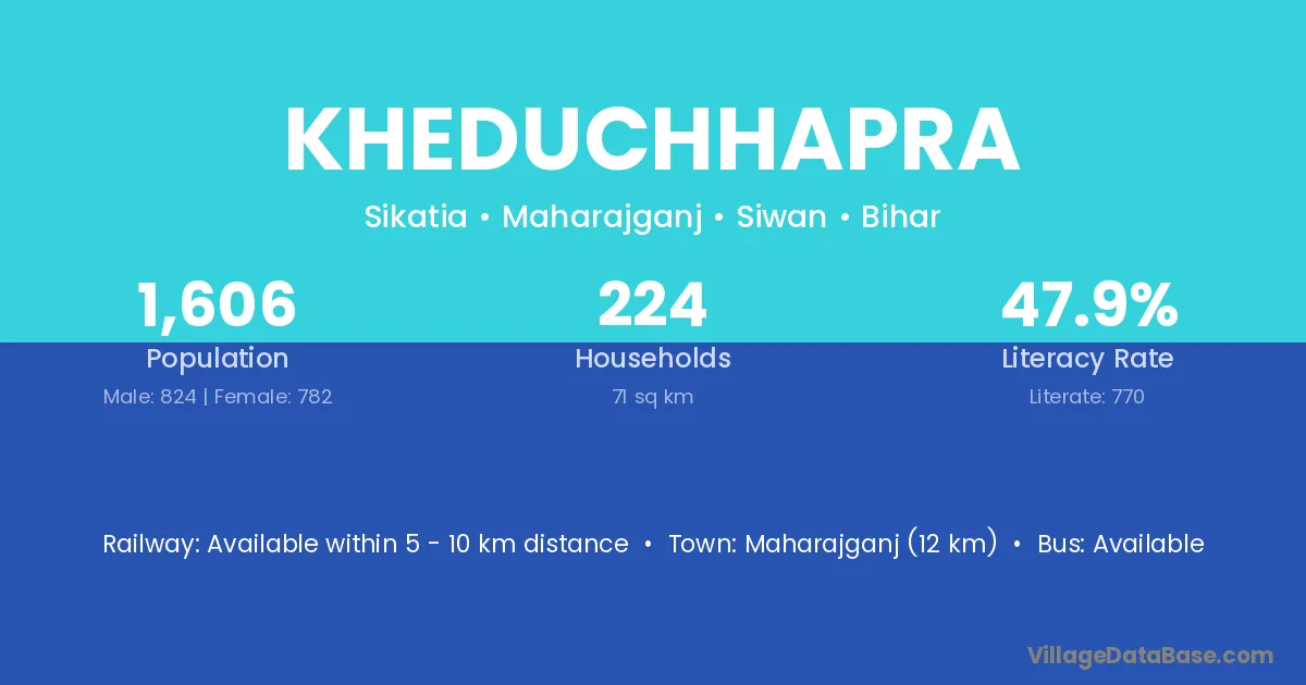 Maharajganj (12 km) is the nearest town to Kheduchhapra village for major economic activities and is located approximately 12 km away.