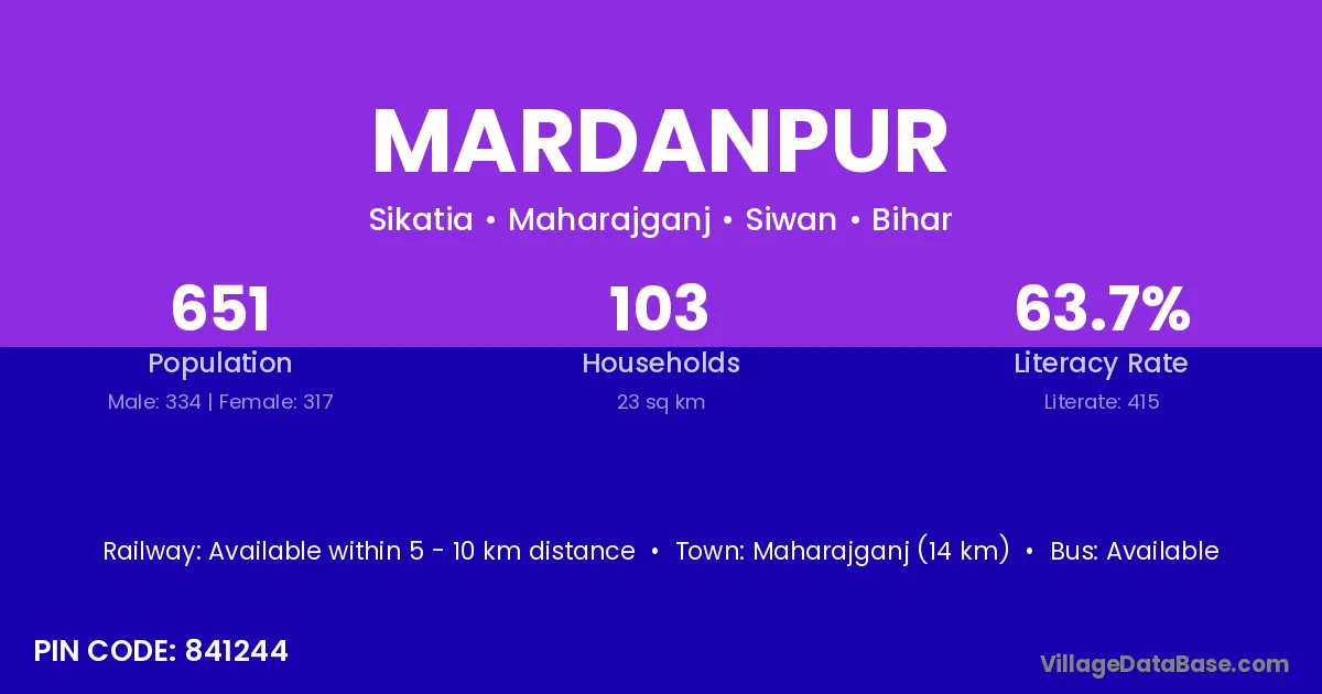 Maharajganj (14 km) is the nearest town to Mardanpur village for major economic activities and is located approximately 14 km away.