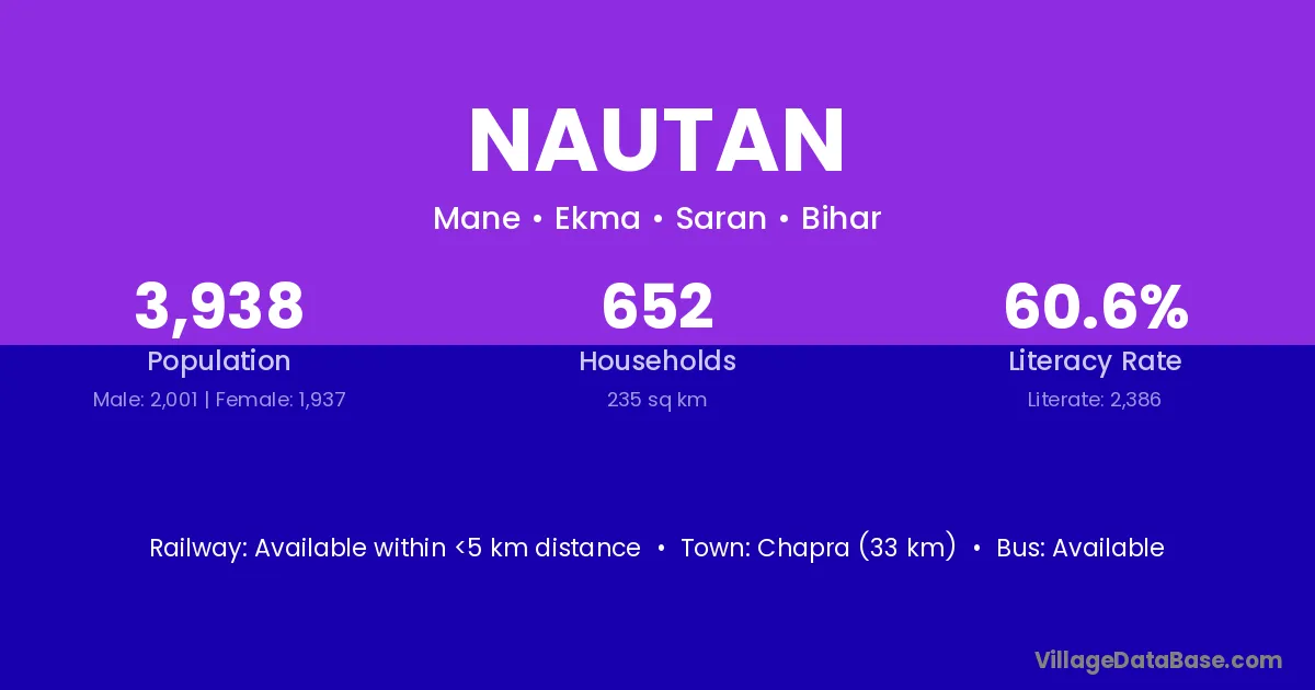Maharajganj (6 km) is the nearest town to Nautan village for major economic activities and is located approximately 6 km away.