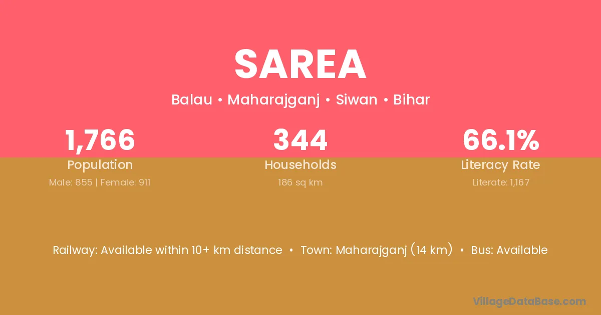 Maharajganj (14 km) is the nearest town to Sarea village for major economic activities and is located approximately 14 km away.