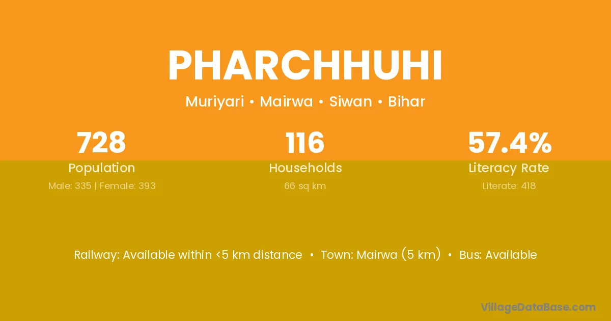 Mairwa (5 km) is the nearest town to Pharchhuhi village for major economic activities and is located approximately 5 km away.