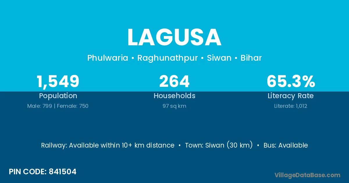 Siwan (30 km) is the nearest town to Lagusa village for major economic activities and is located approximately 30 km away.
