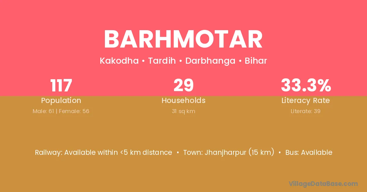 Birpur (14 km) is the nearest town to Barhmotar village for major economic activities and is located approximately 14 km away.