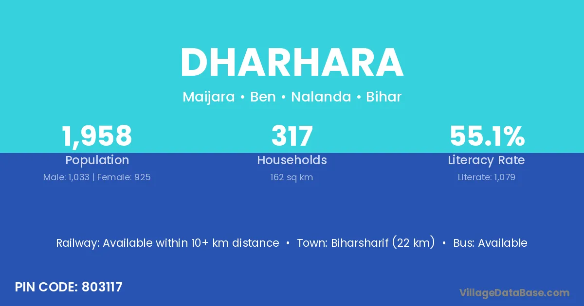 Nirmali (30 km) is the nearest town to Dharhara village for major economic activities and is located approximately 30 km away.