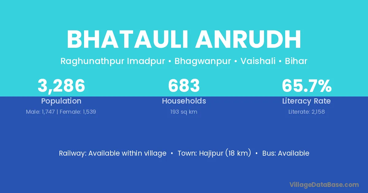 Hajipur (18 km) is the nearest town to Bhatauli Anrudh village for major economic activities and is located approximately 18 km away.
