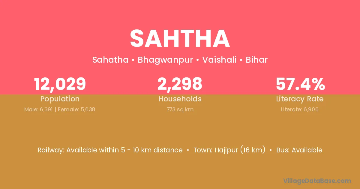 Hajipur (16 km) is the nearest town to Sahtha village for major economic activities and is located approximately 16 km away.