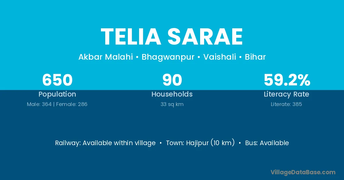 Hajipur (10 km) is the nearest town to Telia Sarae village for major economic activities and is located approximately 10 km away.
