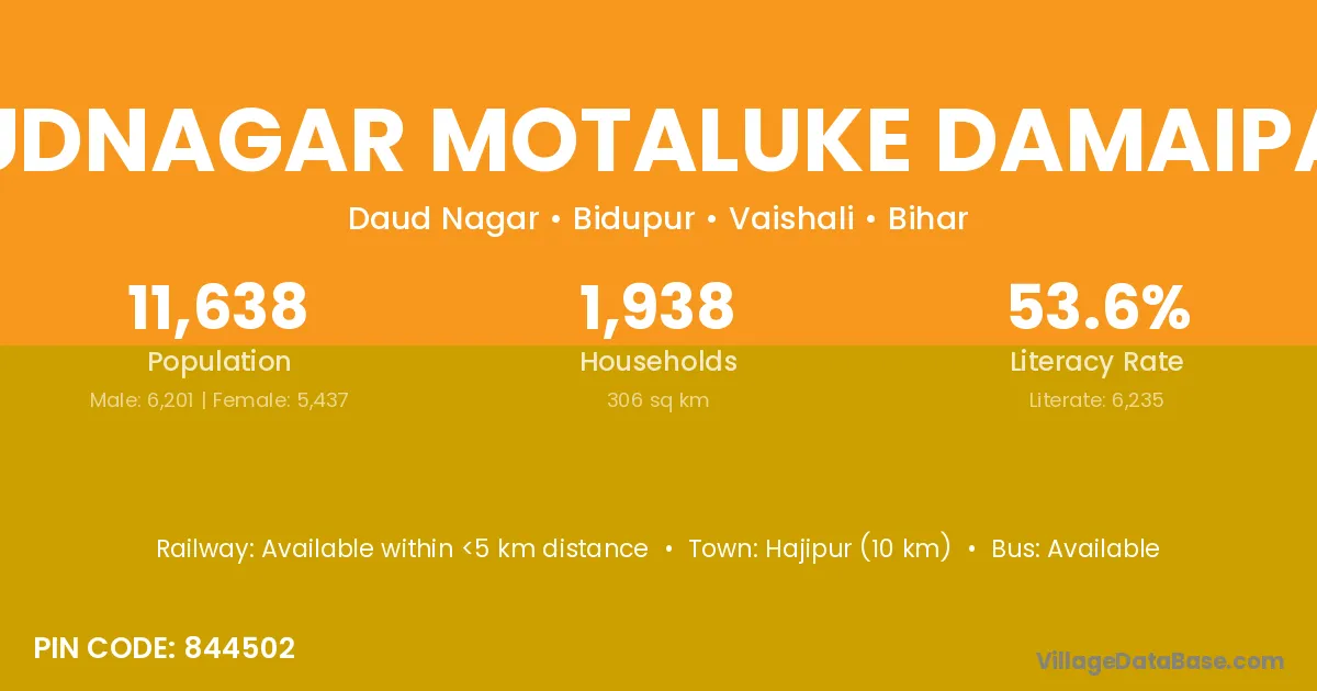 Hajipur (10 km) is the nearest town to Daudnagar Motaluke Damaipatti village for major economic activities and is located approximately 10 km away.