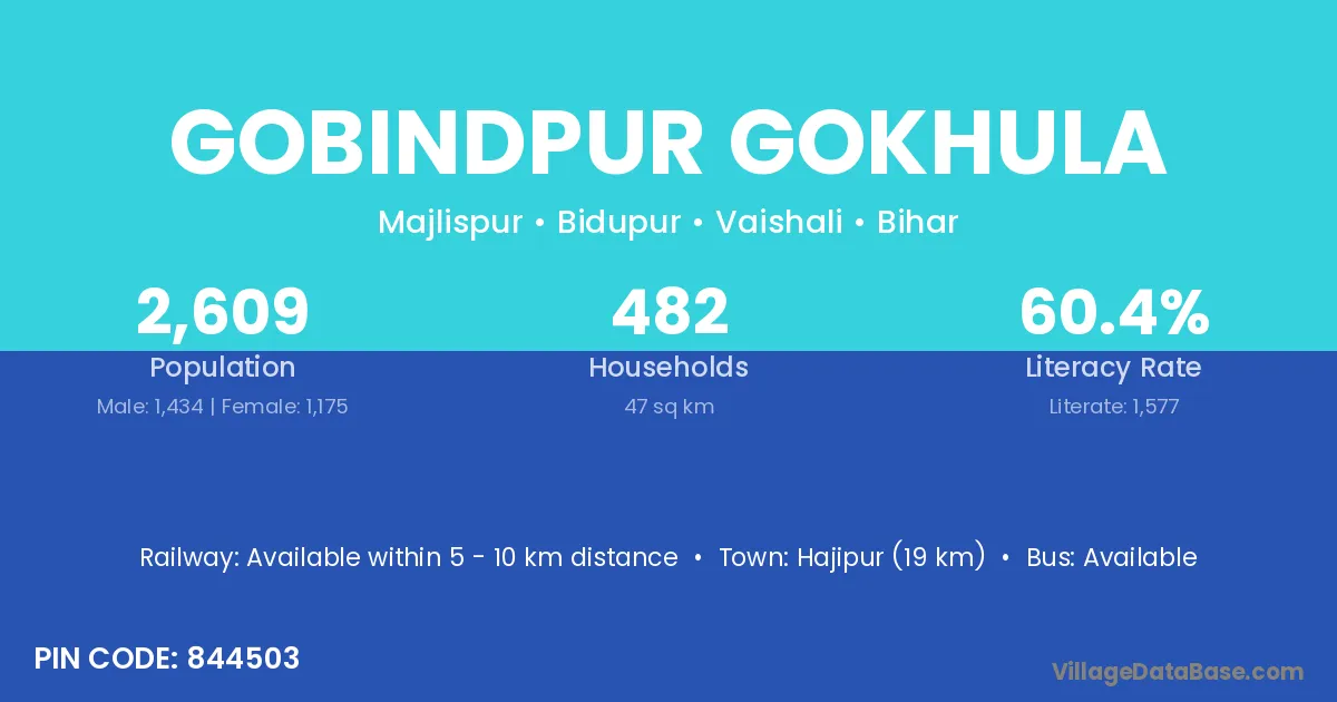 Hajipur (19 km) is the nearest town to Gobindpur Gokhula village for major economic activities and is located approximately 19 km away.