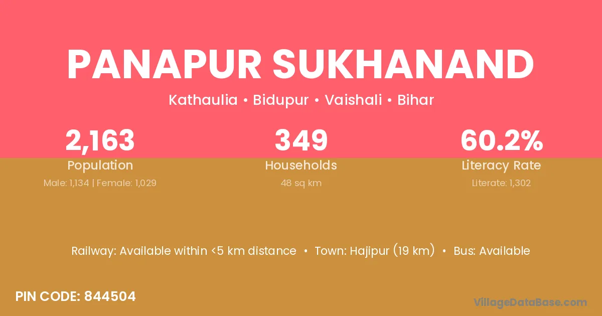 Hajipur (19 km) is the nearest town to Panapur Sukhanand village for major economic activities and is located approximately 19 km away.